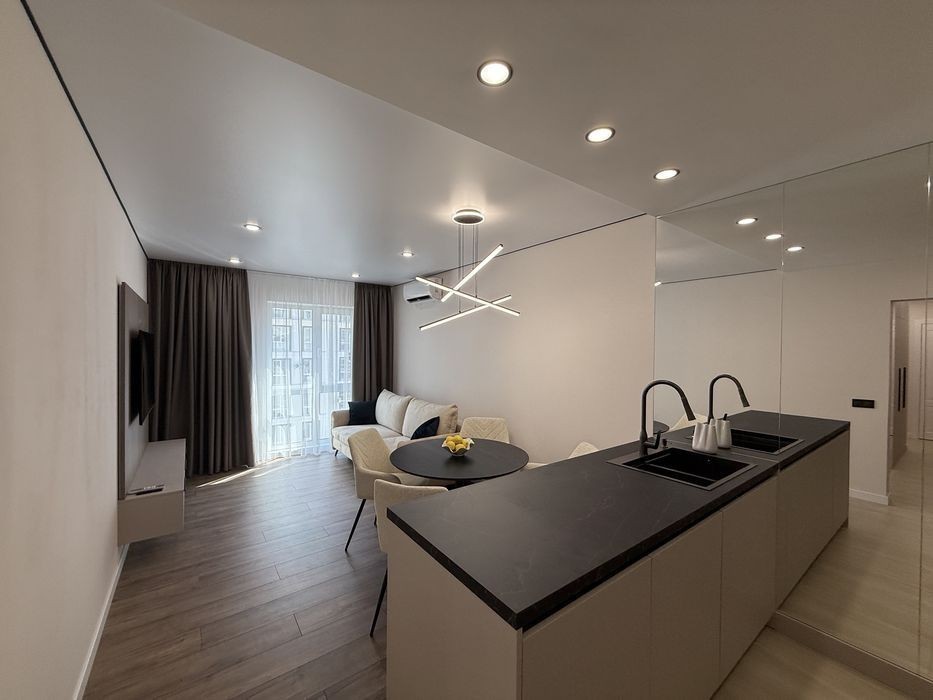 Дизайнерська 2-кімнатна 60 кв. м, Новий стильний ремонт, сучасні нові меблі, багато великих шаф, якісна побутова техніка. Дві окремі спальні та простора кухня студіо. Будинок «ЛОНДОН». -ЖК "Нова Англія» це надзвичайне місто в місті, підземний та наземний паркінг, велика школа, дитячий садок, якісні дитячі майданчики, дитячі гуртки, спортивний майданчик, тенісний корт, міні-футбол, барбекю, салони, клініки, сімейний лікар, майданчик для собак, різноманітні кафе, ресторан, маркети. Метро "Васильківська" 10-15 хвилин пішки.