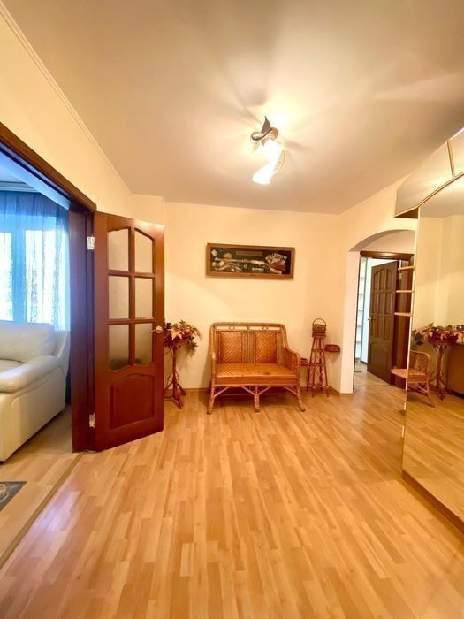Продаю 3-х кімнатну квартиру в центрі міста 85 кв. м., на 5 поверсі, 9 поверхового будинку по вулиці Івана Богуна, буд. 51, з дорогими меблями та технікою. В квартирі зроблений ремонт, двері з натурального дерева сосна, меблі: гостинний буфет із дуба, диван з високоякісної шкіри, дитяча кімната з натурального дерева дуб, ольха, сосна під замовлення "меркс", оновлена caнтехніка, ванна, кухня, техніка : плита «Bosh», холодильник Side-by-Side. Оновлений балкон, вагонка тощо. Встановленні лічильники : тепла, газа, гарячої і холодної води. Підігрів підлоги. Гарне розташування в тихому центрі міста з зручною логістикою. У дворі велика гостьова парковка, дитячий та спортивні майданчики. Будинок під охороною. На поверсі маємо битову кімнату 10.кв. м.