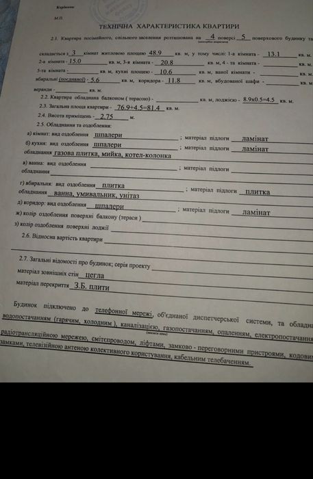 Квартира 3 кімнатна котеджного типу вул. Чорновола р-н Там таму 4/5ц 81,4м не кутова будинок утеплений висота стелі 2.75, квартира облаштована 2 лоджіями одна з них з кухні та залу, інша з спальні. Стан квартири житловий залишається вмонтована кухня, меблі в залі та прихожа. 2 квартири на площадці є особистий підвал. Будинок загороджений, дитячий майданчик є місце для автомобілів є загальна альтанка для відпочинку, створене ОСББ. Розвинута інфраструктура поруч дитячий садочок, нова школа, дитяча поліклініка