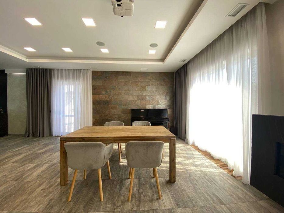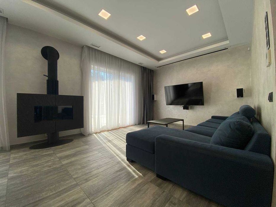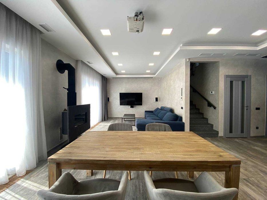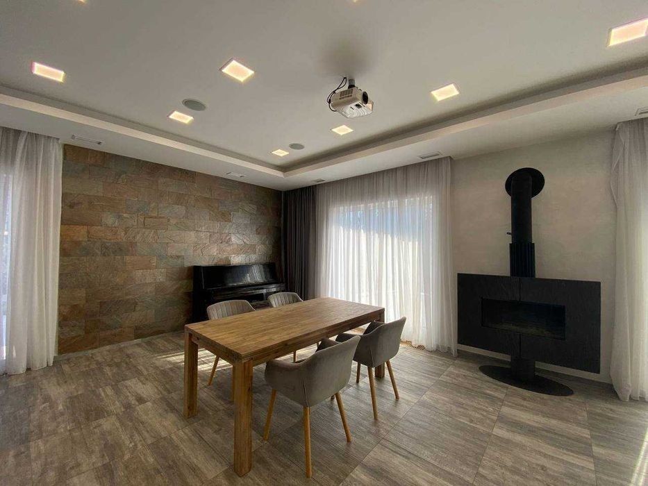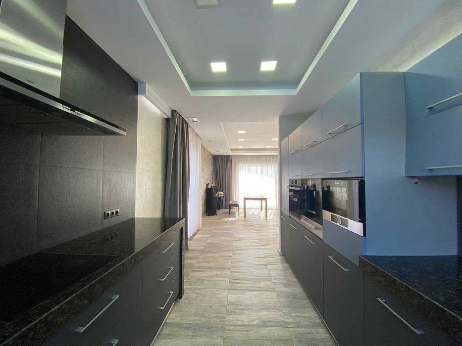 Продам будинок у котеджному містечку Любимівка, в 3-х кілометрах від житлового масиву Придніпровськ. * Площадь 12 соток землі з ландшафним дизайном * Обща площа 160 м2 *складається із: 1-й поверх - велика кухня - вітальня 60 м2, санвузла та кабінету 2-й поверх - дві спальні по 16 м2 і одна спальня 13 м2, великий санвузол 13 м2 та гардеробна 8 м2. *Якісні дорогі меблі, техніка Bosch, проектор зі звуковою системою вмонтований в стелю. *Кондиціювання поверху здійснюється індивідуальними спліт-системами Daikin. *Навіс на 2 автомобілі поєднаний з технічним приміщенням, де знаходиться управління системою поливу ділянки і бак для зберігання води вуличної температури. Особливістю цього будинку є розташування тераси на південну сторону, що викликало необхідність зведення навісу над усією терасою за системою вітрил. *Фундамент: стрічковий по фундаментним блокам. Стіни керамблок 2 NF товщиною 250 мм. Утеплення стін пінополістиролом 150 мм. + баранець. Дах плоский. Утеплення керамзітом та пінополістиролом 200 мм. *Опалення будинку - електрокотел, газу немає, тепла підлога скрізь на першому поверсі, на другому у санвузлі. *Яма - септик. *Скважина 75 м з системою очищення води.
