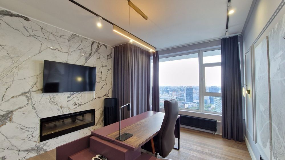 Оренда видового, повністю мебльованого офісу Кловський узвіз, 7 Має власний генератор на офіс! Та генератор на будівлю (ліфти) Площа - 270 м2 Офіс знаходиться на 35 поверсі, нежитловий фонд. Кількість робочих місць - 35-40. Великі панорамні вікна з видом на центр міста. * Приміщення складається з 3 робочих залів, кімнати керівника, переговорної, кухні, скайп-зони, сан/вузла, душової, гардеробної кімнат * Застосовано технології акустичного дизайну * Сучасні офісні меблі * На кухні вся необхідна для офісу техніка * Система кондиціювання, клімат-контроль. У будинку цілодобова охорона, відеоспостереження. Високошвидкісні ліфти. м. Кловська - 5 хвилин