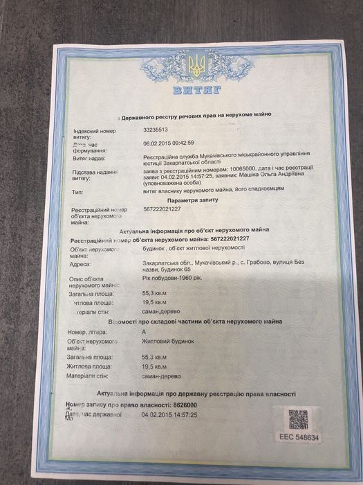 Продається будинок в гірській місцевості за адресою: Мукачівський р-н, с. Грабово, вул. без назви, буд. 65 та дві земельні ділянки 0,25 га для будівництва і обслуговування житлового будинку та 0,25 га для ведення особистого селянського господарства, ділянки обʼєднані. Додаткова інформація за телефоном 06******47