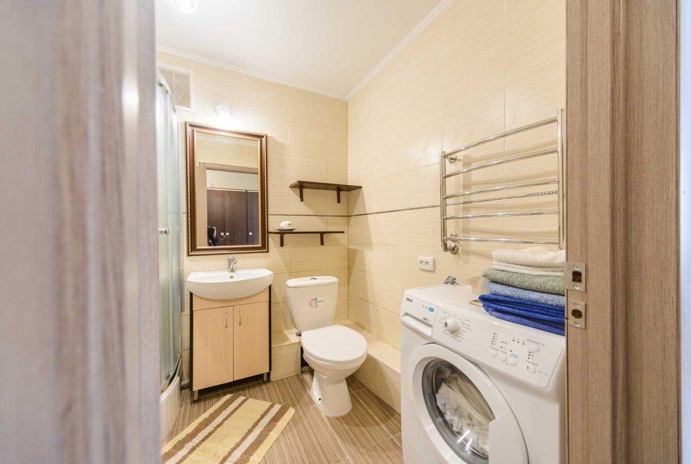 Здам чисту квартиру- студію, 39м2 на Софіївській Борщагівці в ЖК Щасливий. Поруч Софія Резиденс. В квартирі є вся необхідна техніка- холодильник, мікрохвильова піч, плита, чайник, праска, гладильна дошка, сушарка, пральна машина, пилосос, кондиціонер, СМАРТ-ТВ, Wi-Fi, фен. Є постільна білизна, посуд та засоби індивідуальної гігієни. Квартира знаходиться в 200 м від Кільцевої дороги, поруч комплекс Софія Резиденс. Є паркінг для укриття. Є парковка. На території та поруч є магазини, аптеки, кафе, магазин Фора, Укрпошта, Нова пошта. Поруч з комплексом зупинка транспорту до метро Теремкі та Академістечко, Житомирська В квартирі не курять!