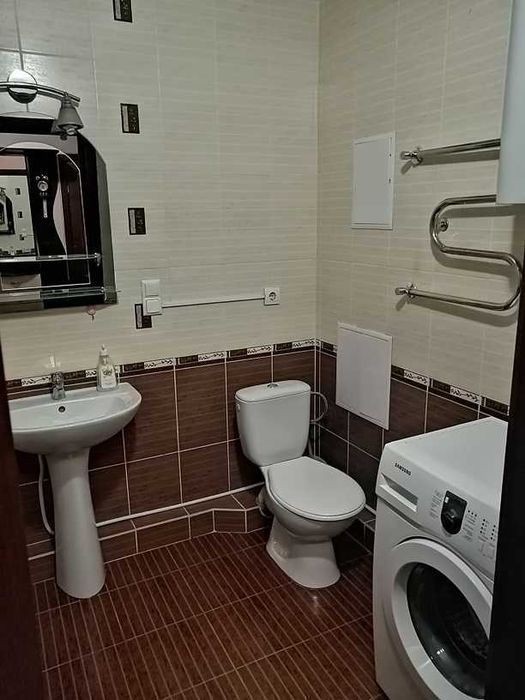 Видова квартира в ЖК "Паркові озера". Поряд метро "Дарниця" та парк Перемоги. Воскресенська вул. 14д, 6/25-пов. будинку 52/18/12 кв. м., хол 9 метрів, новий монолітно-каркасний будинок 2016 року побудови. Територія закритого типу. Будинок та прибудинкова територія охороняється, відмінний під'їзд, 3-и ліфти, є консьєрж та відеоспостереження. Квартира дуже простора і світла, лоджія із кухні засклена та утеплена. Квартира готова до затишного проживання однієї людини або сімейної пари (можливо з дитиною). В квартирі є: шафа-купе в передпокої та гардеробна кімната, гарний 2-х спальний диван, вбудована кухня, холодильник, плита з поверхнею та духовкою, пральна машинка, бойлер. Можуть щось докупити за потребами орендаря. На все є лічильники (у тому числі і на опалення). Ціна 16000 грн/міс. + комунальні послуги. Комісія агентства 50%