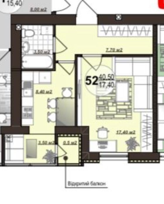 Продається 1-кімнатна квартира в ЖК «Добробут» 6-й поверх, секція здана. Вікна на стадіон, балкон з кухні. Чорнова штукатурка, електрика та комунікації підключені. Готова до ремонту!
