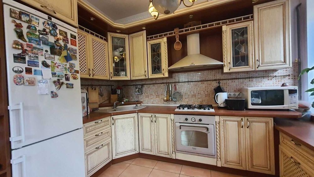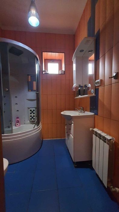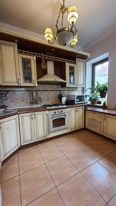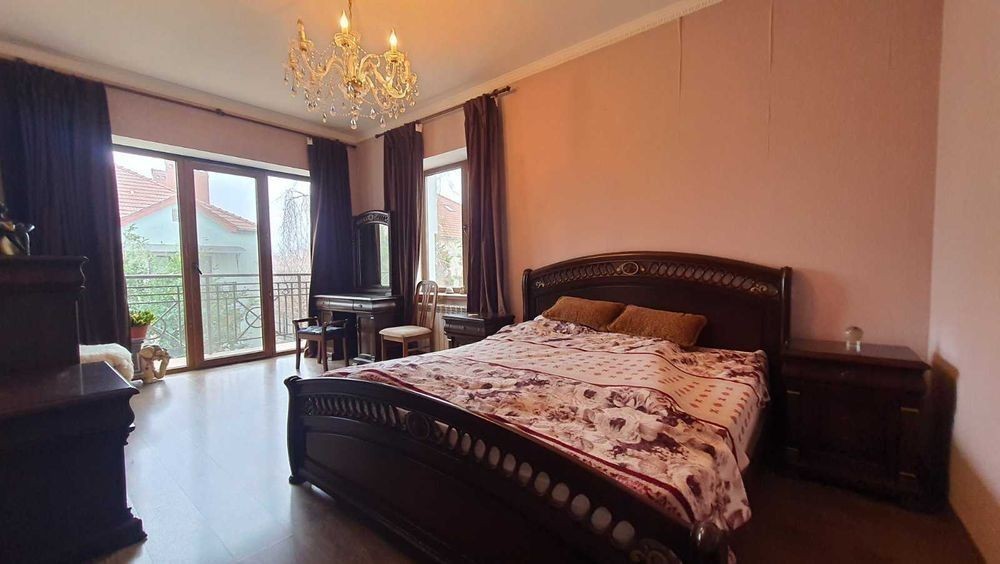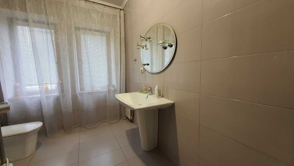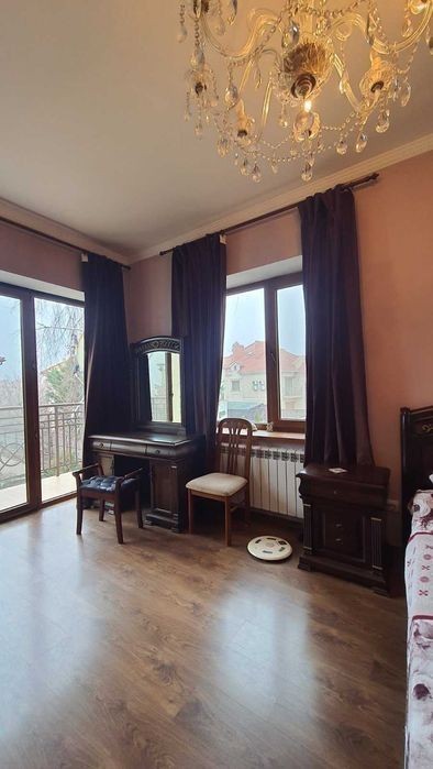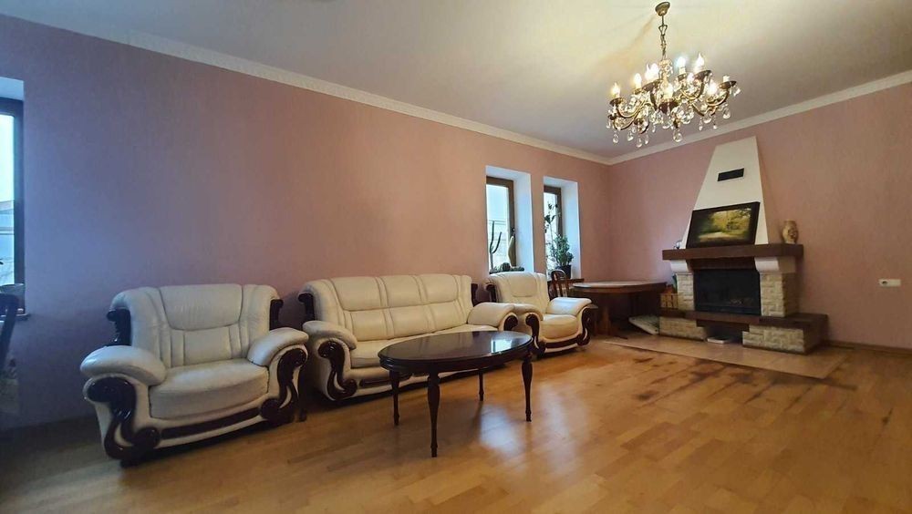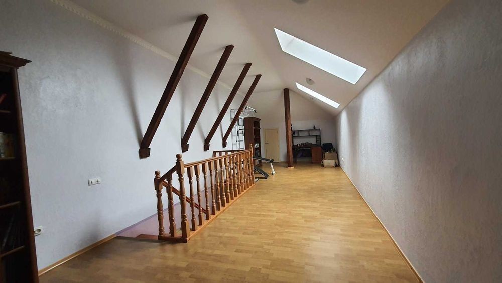 Будинок 2-х поверховий дуплекс. 3-х рівневий. Побудований з червоної цегли, дах натуральна черепиця. S = 308,5 кв. 1-й поверх: передпокій (46,1 кв. м. ), кухня (8 кв. м. ), гараж (17,8 кв. м. ), с/вузол. 2-й поверх: 3 спальні (21,8+12,4+23,6 кв. м. ), вбиральня (2,7 кв. м. ), 2 с/вузла. Мансарда: 39 кв. м. Цоколь: господарські приміщення. Повністю мебльований.