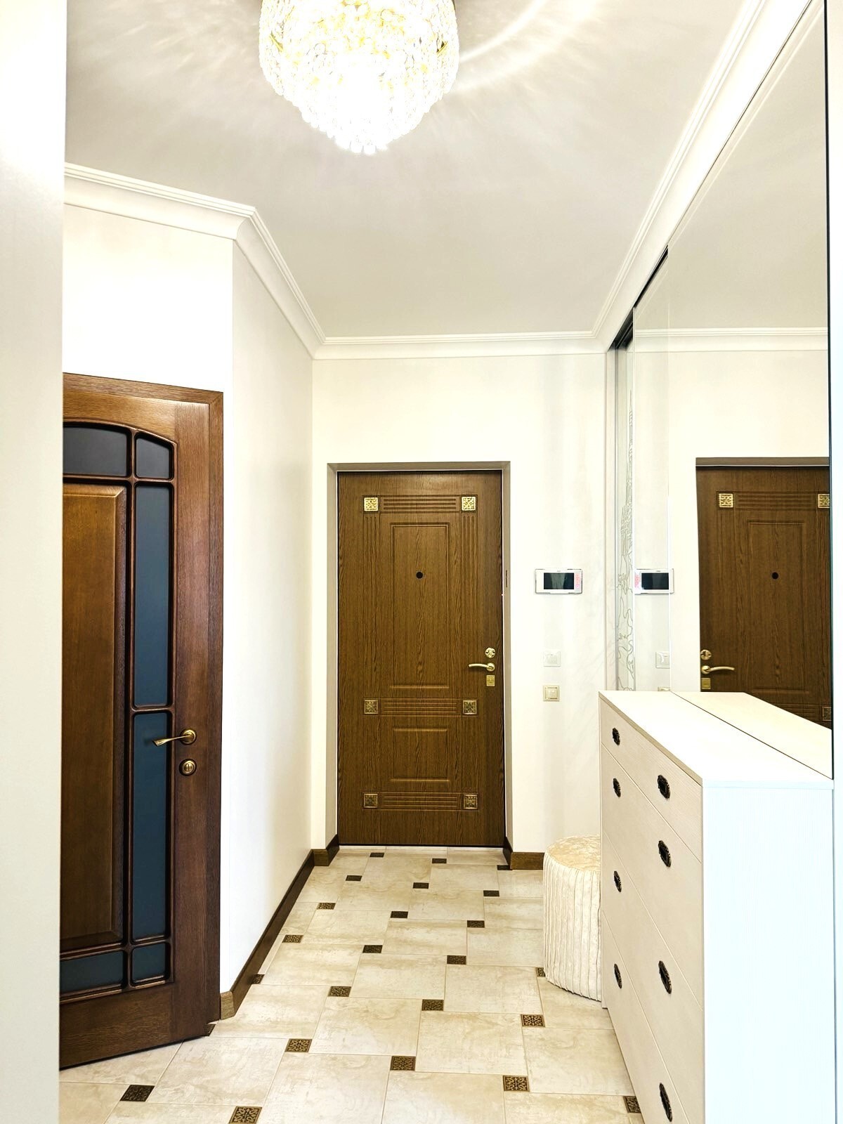 Затишна двокімнатна квартира, де починається ваше нове життя. Перебуваючи на межі Печерського району, з панорамних вікон ви будете насолоджуватися краєвидами на Taryan Towers та Новопечерські Липки. Квартира виконана у світлих тонах. Грамотне функціональне планування робить кожен простір максимально зручним: - в коридорі вас зустрічає дзеркальна шафа, яка додасть простору та світла; - простора кухня укомплектована всією необхідною технікою Bosch, Liebherr; - у залі на вас чекає комфортний розкладний диван з кріслом та стильні пенали, - а в спальні - дизайнерське двоспальне ліжко, яке подарує вам солодкі сни; - два повноцінні укомплектовані санвузли: один із душовою кабіною для швидкого ранкового освіження, інший з джакузі Koller Pool для розслаблюючих вечорів; - нові енергоефективні вікна, з внутрішніми петлями. - системи припливної вентиляції та кондиціювання Daikin забезпечить Вас свіжим повітря будь-якої пори року; - тепла електрична та водяна підлога створює додатковий комфорт; - високоякісна система фільтрації завжди забезпечує Вас якісною питною водою; - двохзонний лічильник на світло, тепло та воду - зменшать витрати на комунальні послуги. Додатковий бонус: між 16 та 17 поверхами розташований утеплений технічний поверх, що забезпечує додатковий комфорт в якості додаткової тепло та звукоізоляції від сусідів зверху. Квартира виконана з високоякісних матеріалів: дерев'яні двері, паркетна дошка та плинтуси Tarkett, плитка, металевий декор Imola, сучасна сантехніка Roca, Grohe та Hansgrohe, електрика - legrand. Кожна деталь продумана до дрібниць, щоб ви могли насолоджуватися комфортом та стилем, а кришталеві люстри створюють атмосферу затишку та вишуканості. Безпека: консьєрж, відеоспостереження і паркувальні місця, що охороняються. Упорядкована територія з дитячими та спортивними майданчиками створює ідеальні умови для життя вашої родини. У кроковій доступності знаходяться Голосіївський парк і Ботанічний сад, школи, дитячі садки, фітнес та торгові центри. Гарна транспортна розв'язка в будь-яку точку міста. Піша доступність до метро Деміївська. 10 хвилин близькість до центру, але, в той же час, віддаленість від традиційних місць активного скупчення людей - все це незаперечні переваги даного об'єкту. Ця квартира - гавань для вашої родини. Запишіться на перегляд сьогодні! В вартість 220000 - не входить: люстри та деякі меблі. З люстрами та меблями 240000