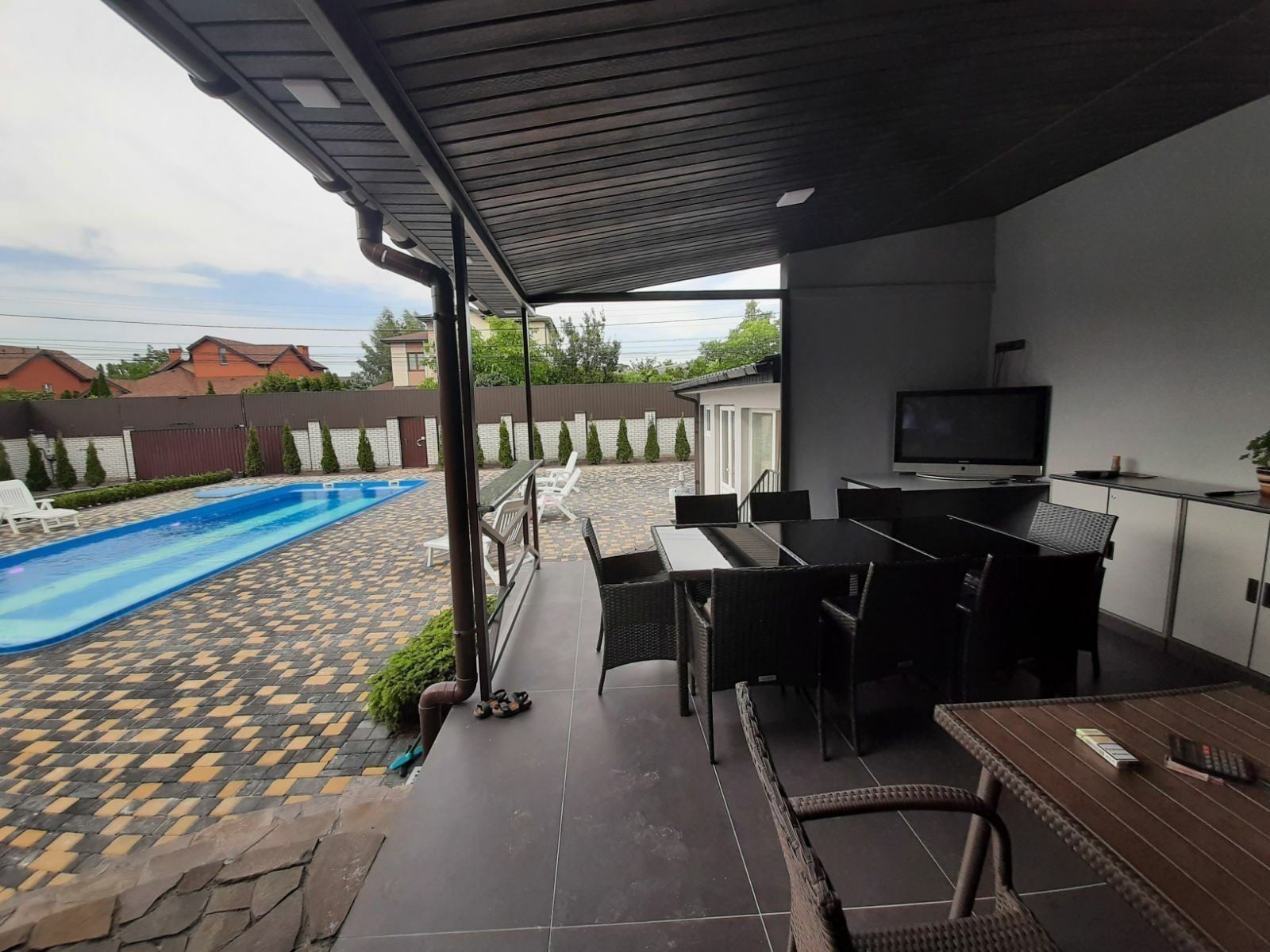 Софиевская Борщаговка. Дом 250 кв. Большой летний бассейн. Терраса на 20 посадочных мест. Паркинг на 6 авто. Ландшафтный дизайн. В доме Большая гостиная на 20 человек, 3 раздельных спальни, 3 с\у., бильярдная, Бассейн с подогревом, с комнатой отдыха. сауна -2000 грн. топка. Цена: от 15000 грн будний день до 10 человек, свыше +500 грн. за гостя. Максимум 15 гостей ВЫХОДНЫЕ ДНИ 35000грн. Сут либо 45000 грн 2 суток arendadomov.net/arenda-domov-posutochno Другие варианты домов: arendadomov.net/ Новый год 100 тысяч 2 сут Другие предложения на Н. Г.