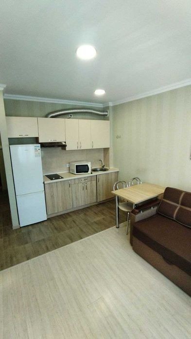 Продаж однокімнатної квартири-студіо з ремонтом, меблями та техникою в комплексі апартаментів біля метро Лісова, вул. Вінстона Черчилля, 93 (Червоноткацька). Розташована на 1 поверсі 5-поверхового цегляного будинку. Загальна площа 31 кв. м., кімната з кухнею 26 м2 та ванна кімната 5 м2. У квартирі зроблений якісний ремонт, підлога - ламінат, пластикові вікна, кондиціонер-інвертор та продається з меблями та технікой. На сьогодні здається в оренду, якою керує компанія комплексу. Можна поновити умови та залишити орендаря, здати іншому або купити та проживати. Парадне чисте з домофоном, місця для паркування поряд з будинком. До метро Лісова біля 15 хвилин пішки. Можливий торг.