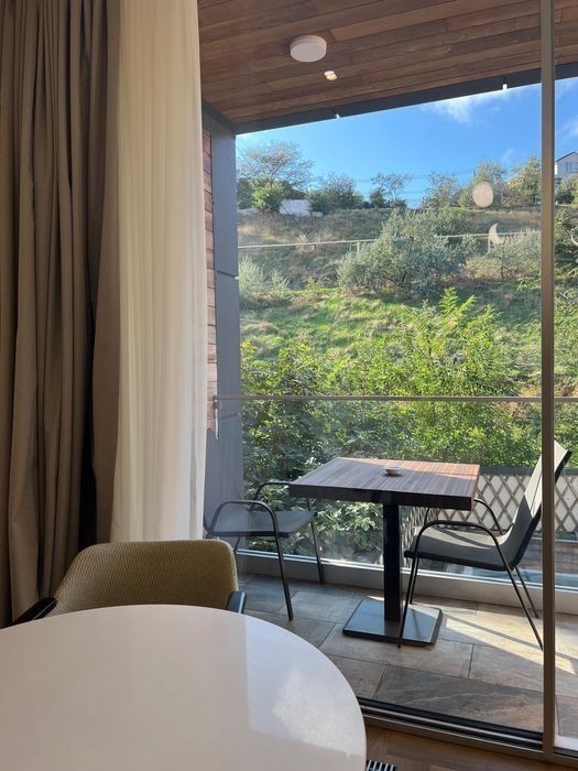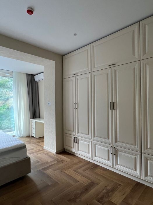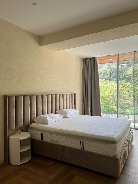 Апартаменты расположены на трассе здоровья, 13-я станция Фонтана в 4-х этажном коттедже на 2-м этаже. • Расстояние до моря - 30 метров, доступ к побережью по удобной пешеходной дорожке. В пятидесяти метрах на одном из пляжей расположен ресторан Кораблик с лаунж зоной и детской площадкой где очень комфортно можно провести весь день. В пяти минутах ходьбы находиться популярный ресторан Рыба где вы можете насладиться изысканной морской кухней. Двухкомнатные апартаменты с видом на бассейн. • Площадь: 75м² • Спальные места: отдельная спальня с двуспальной кроватью + раскладной диван в гостиной • Особенности: • Раздельные комнаты, что создаёт ощущение уединённости даже при длительном проживании. • Полностью оборудованная кухня с обеденной зоной. • Современная ванная комната с душем, фен, • Рабочая зона - письменный стол и удобное кресло. • Кондиционер, Wi-Fi, Smart TV. • Интерьер: минимализм с тёплыми акцентами, уютный мягкий свет. Подходит для: длительного проживания, семей, деловых гостей.