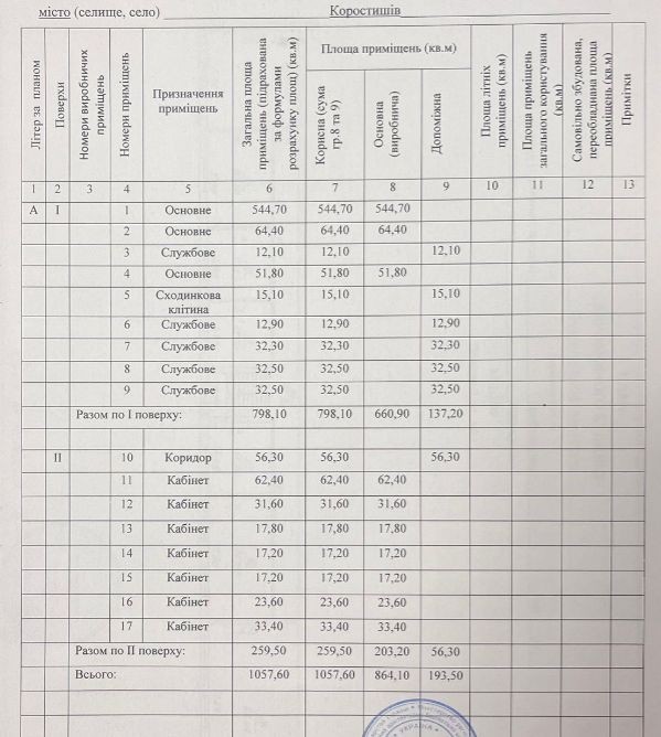 Продаж виробничого приміщення м. Коростишів (24101201)