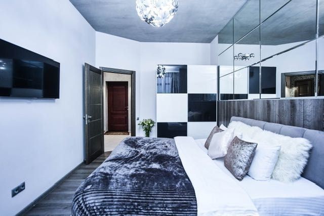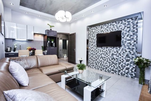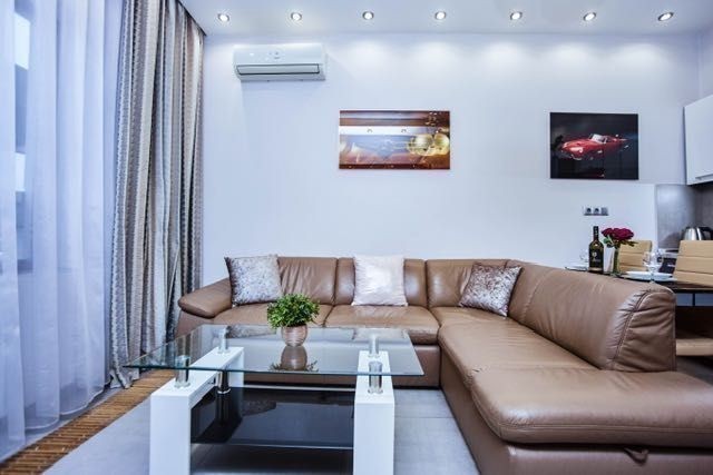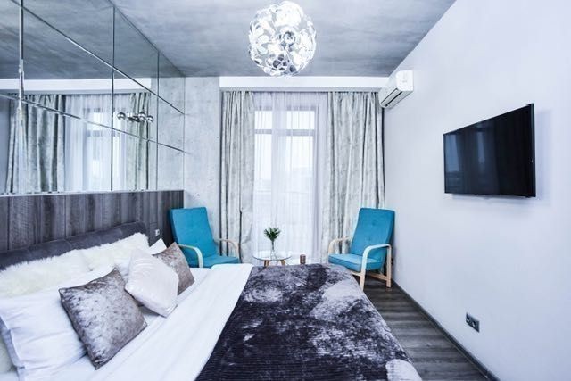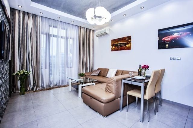 ул. Греческая д. 1а, 8 этаж/12-этажного нового элитного современного жилого комплекса «Гефест», в самом сердце Одессы, рядом со многими архитектурными жемчужинами города, улица, параллельная Дерибасовской, вблизи всемирно известного Одесского национального академического театра Оперы и Балета, а также Приморского бульвара. В 5 минутах ходьбы от дома-самый большой в городе парк им. Т. Г. Шевченко. Автономное водо-, тепло- и энергоснабжение. Высокий уровень охраны гарантирует Вашу безопасность, а высококачественные и надежные лифты «OTIS» быстро доставят Вас до нужного этажа. Имеется подземная парковка. Окна квартиры открывают великолепный панорамный вид на центральную часть города, побережье и, конечно же, море и порт. Ультрасовременные стильные апартаменты, просторные и уютные, две раздельные комнаты, изысканный дизайн интерьера, единое студийное пространство гостиной и кухни, в котором есть кухонная зона и гостиная с угловым кожаным диваном, при необходимости раскладывающимся в двуспальное место. В спальне Вас ожидает большая двуспальная кровать размером 1,80м на 2,00м, в каждой комнате есть ЖК телевизоры с IP-телевидением, в холле-вместительная гардеробная. В ванной комнате- ванна джакузи для двоих. Два балкона открывают чудесный вид на близлежащую часть города.
