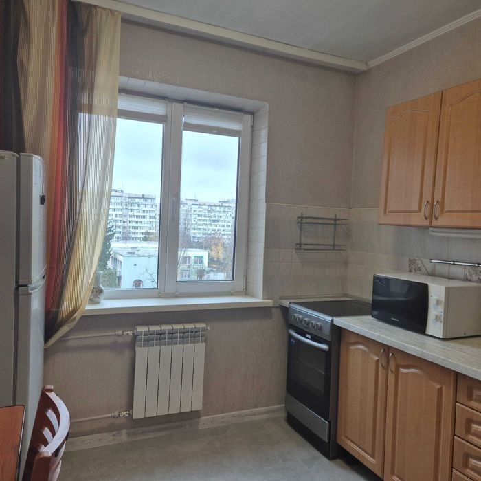 Оболонь, станція метро "Мінська" - 3 хвилини пішки, проспект Оболонський 23-А. Оренда 3-кімнатної квартири, 5/9-поверхового будинку, 70/42/8, три окремі кімнати, комора, косметичний ремонт, дві просторі лоджії засклені, санвузол роздільний, лічильники води, бойлер, мебльована, кондиціонер, пральна машина-автомат, телевізор, мікрохвильова піч, електроплита з духовою шафою, броньовані двері, домофон, тамбур на дві квартири, охайний під'їзд, тихий зелений двір, розвинена інфраструктура, все поряд, дуже зручне транспортне сполучення! Довгострокова оренда! Чудова пропозиція для сім'ї з дітьми! БЕЗ ТВАРИН! Відеоогляд квартири! Оплата за перший місяць + гарантійна сума + комісія 50%!