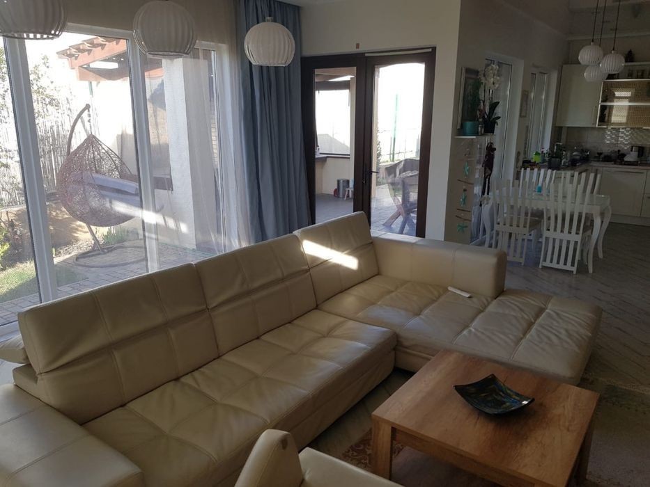 Предлагаем снять стильный дом 170м. кв. в Совиньоне-3 (Люстдорф). Современный дизайн, меблирован, техника. Все выдержано в едином стиле. Кондиционирование. Участок 5 соток, Один этаж, гараж, студия кухня, две спальни, гардеробная комната, 2 санузла. В доме есть всё для Вашего комфортного проживания. Зеленая зона, детская площадка, зона барбекю. Территория поселка охраняемая, пропускная система въезда. Инфраструктура района развита, до моря рукой подать. По близости расположены детский развлекательный центр, супер-маркет, аптека, теннисный корт, 4 ресторана, комплекс отдыха “Елки-Палки”. Постояльцы могут воспользоваться следующими услугами: интернет, парковка для машин, удобный трансфер от/до аэропорта. Курение на всей территории запрещено. Комфорт пребывания в доме обеспечит кондиционер. Для досуга отдыхающих предлагается телевизор с плоским экраном. В ванной комнате вы найдете фен, стиральную машину. В распоряжение гостям предоставляется холодильник, микроволновая печь, электрический чайник 1200$ Лето 1500$