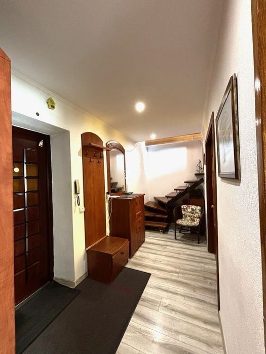 Продам двох кімнатну, дворівневу квартиру, в цегляному будинку. 91 м - загальна, 63 м - житлова. 6 поверх з 6, та мансардний 7. Лоджія зʼєднана із кухнею. На мансардному поверху є потужний кондиціонер, (літо - зима), дах утеплений, індивідуальне опалення без підігріву підлог. Повністю нові меблі і побутова техніка на кухні і вітальні. Квартира середня, утеплена із зовні. Вікна виходять у внутрішній та затишний двір з парковкою. В будинку є перукарня, аптека, спа салон. Навпроти - магазин продуктів. Поряд школа та дитячий садок. 5 хв від будинку знаходиться: західний ринок, ТЦ АТБ, зупинка громадського транспорту, церква. Додатково є сигналізація на вхід, виведена на телефон. Квартира світла, затишна і вартує уваги.