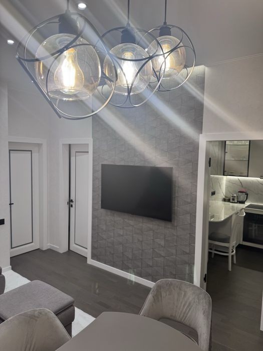 Дом бизнес класс Идеальная 2-х комнатная квартира. Шикарный новый дорогостоящий ремонт. Пол паркетная доска. 3 кондиционера C&H 3 телевизора 2 спальни с зеркальными шкафами Гостиная ( угловой диван, обеденный стол Италия) Кухня с красивой и дорогой мебелью ( столешница кварцевый агломерат), а также зоной быстрого приёма пищи. Большой функциональный санузел (теплым пол) Лоджия с зоной отдыха ( тёплый пол) и видом на шикарный ночной город и прекрасные закаты (стоит кофе машина) По всей квартире большое количество вариантов подсветок! Квартира полностью готовая для проживания, только личные вещи завози и наслаждайся. Оформлено право собственности статус квартиры (свои налоги продавец оплачивает). Звоните записывайтесь на показ.