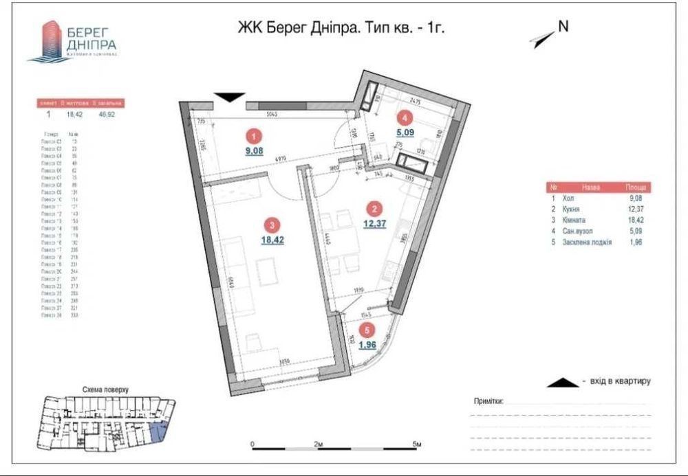 ПРОДАЖ ПО ПЕРЕУСТУПЦІ ВІД ВЛАСНИКА! Продається однокімнатна квартира в ЖК Берег Дніпра загальною площею 46,92 м2, з яких хол - 9,08 м2, кухня - 12,37 м2, житлова кімната - 18,42 м2, сан. вузол. - 5,09 м2 та засклена лоджія - 1,96 м2. Квартира знаходиться на 8 поверсі із 28 можливих. ЖК розташований по вулиці Дніпровська Набережна 17-К у місті Києві на першій береговій лінії з фантастичними видами на правий берег та Дніпро. Навпроти комплексу - чистий пляж і велика зелена зона. До найближчої станції метро не більше як 25 хвилин пішки. Поряд ТРЦ River Mall із різноманіттям магазинів, великим супермаркетом і кінотеатром. Будинок комфорт класу з монолітно-каркасною технологією будівництва, стіни з керамоблоку та газоблоку, утеплений мінеральною ватою, автономне опалення, закрита територія з гостьовим та підземним паркінгом. Є генератор, чотири швидкісні ліфти на 1 підїзд та зарядні станції для електромобілів. Квартира після будівельників: стяжка, гідроізоляція в санвузлі, панорамні вікна, двокамерні склопакети. В будинку охорона, відеоспостереження, закрита прибудинкова територія з дитячим майданчиком та зоною відпочинку (фото додається). Будинок введено в експлуатацію, можна одразу заходити на ремонт.