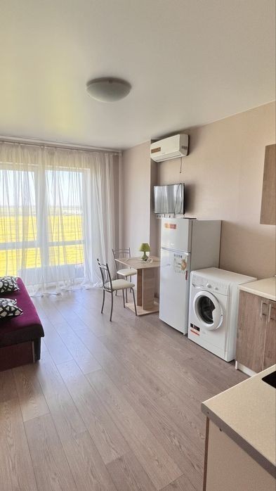 Укомплектована квартира - студія. Реальні фото. Красивий краєвид на захід сонця (меблі, техніка, кондиціонер. ТВ, роутер. і т. д) Телевізор Смарт; Генераторы на случай перебоев подачи центральной электроэнергии. Есть оборудованное Бомбоубежище с Wi-Fi, генераторами, водой, с/у, вытяжкой и т. д. близость к центру города, удобная транспортная развязка во всех направлениях. Закрытая охраняемая территория, видеонаблюдение. Молодой, развитый район, с отличной инфраструктурой: беговая дорожка, детские площадки, салоны красоты, магазины, точки приготовления суши с доставкой, пиццерии. Собственная котельная на газу, работает не зависимо от перебоев электричества. Готова до показів та заселення
