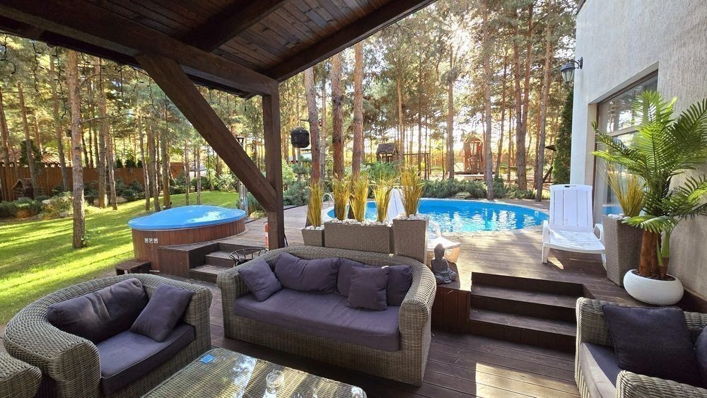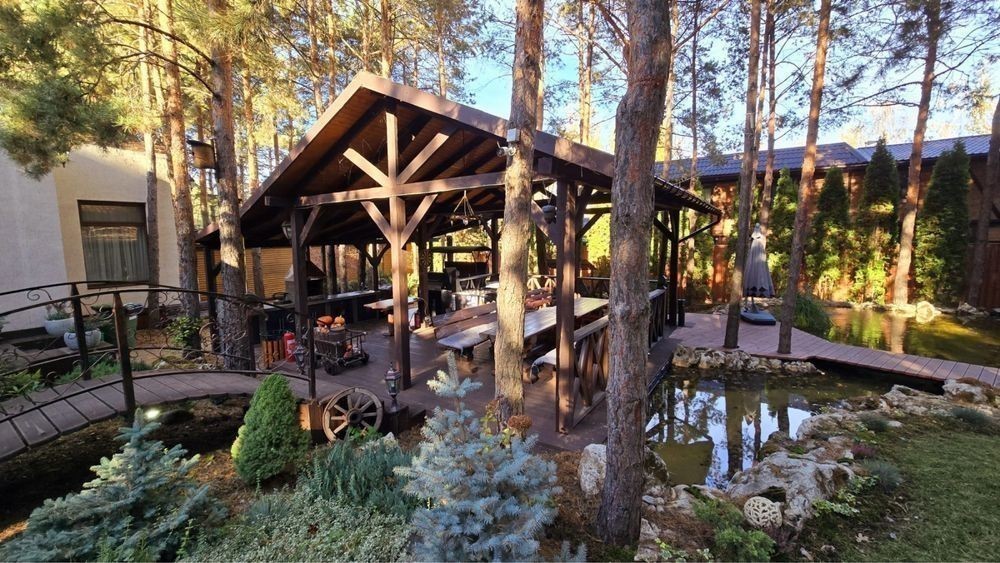 Бассейн, чан, баня, каяки, сапы, лес, Днепр, есть всё…… Подробней https://1dom.club/dom-u-lesa/ Дом от хозяев посуточно на Днепре, в лесу, с бассейном, баней, чаном и т. д. За осокорками. В тихом заповедном месте. Участок 0.6 Га. Высокоскоростной интернет, спутниковое тв, огромная зона пати, мангальная зона. В доме три отдельные комнаты, плюс зал с двумя раскладными диванами, камин. Гостевой домик с баней. Есть лодка, каяки. Батуд, детская площадка, горка, мини футбольное поле на зелёном травяном газоне, теннисный стол, уличные шахматы 3м на 3м. и территория своего леса. Река находится в 20 метрах от участка. В зоне пати на террасе установлен настоящий финский чан на 1000 литров со встроенной печкой внутри и чан джакузи. Удочки, спиннинги, порция дров для костра, камина и мангала даём бесплатно. Есть возможность сварить уху в казане на улице в лесу. Есть настоящий вертел. В доме просторная современная кухня со встроенной техникой, посудомоечной машиной, духовкой и всем остальным. С маленькими домашними животными только по предварительной договоренности. Стоимость в будние от 10000 грн. В выходные пятница-суббота-воскресенье и праздники от 16000 грн. Стоимость в зависимости от количества человек, дня недели и сезона. т. 05******29