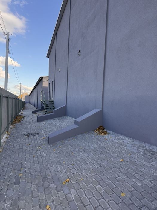 складські приміщення з рампами 630 м2 -Приміщення побудоване з газоблоку та утеплене пінопластом -шліфована промислова підлога. -Дах сендвіч панелі. -Заведена вода та каналізація. -50 кВт електроенергії -відео нагляд та цілодобова охорона -підведена інтернет мережа. -Має велику парковку 25 сотих. -Поблизу маємо зупинку громадського транспорту. -І що найголовніше зручний виїзд на трассу міжнародного значення.