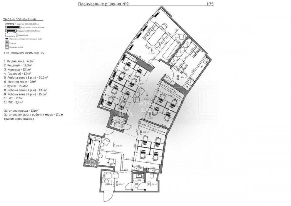 Оренда нового дизайнерського офісу в комплексі бізнес класу Busov Hill Печерський рн, вул. Буслівська, буд. 12 Площа - 135 м, розташований на 2му високому поверсі. Н = 2.8 м Планування - Вхідна зона - Рецепція - Коридор - Гардероб - Робоча зона - Meeting room - Кухня - Робоча зона - Робоча зона - 2 WC Загальна кількість робочих місць - 17р. м (разом з рецепцією) Офіс повністю укомплектований та готовий до роботи. Розрахований на 14 робочих місць Має великі вікна, що робить офіс світлим і просторим. Будинок відключений до генератора, в тому числі й офіс, тому світло є і буде за будь яких обставин. Будинок має цілодобову охорону та відеоспостереження. В будинку своя автономна котельня. Житловий фонд (переведення в НФ оговорюється) Новий сучасний дизайнерський ремонт із застосуванням нових технологій дизайну, повністю мебльований та оснащений необхідною для роботи офісу технікою. На кухні є все потрібне для комфорту співробітників. Бойлер. Центральна система кондиціювання та вентиляції. Стан: готовий Запрошуємо на перегляд разом з агенцією THE Capital # **********