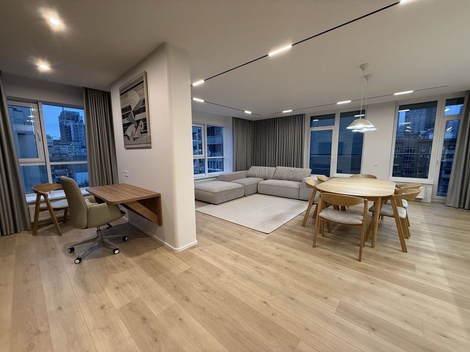 Оренда нової 3-кімнатної квартири в ЖК «Володимирський» Адреса: вул. Антоновича, 109. Перша здача. Будинок бізнес-класу з цілодобовою охороною, підземним паркінгом та трьома швидкісними фінськими ліфтами KONE. У будинку є генератор, що забезпечує роботу водопостачання, ліфтів та опалення. Характеристики квартири: • Поверх: 11 • Площа: 105 м² • Кухня-студія з окремою робочою зоною і великим зручним диваном • Простора лоджія з панорамним видом на місто • Спальня з виходом на лоджію • Дитяча кімната (можна використовувати як кабінет) • Два санвузли • Багато місць для зберігання речей Квартира повністю укомплектована сучасними меблями та технікою. Встановлений інвертор на 5,5 кВт - при відключенні світла він вмикається автоматично. Локація: Центр міста, Печерський район. Поруч станція метро «Палац Україна», бізнес-центри, театри, кінотеатри, галереї, ресторани, кав'ярні та вся міська інфраструктура. Відеоогляд по запиту.