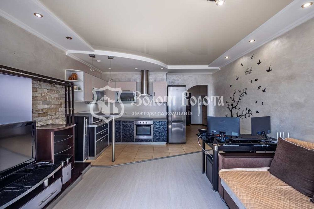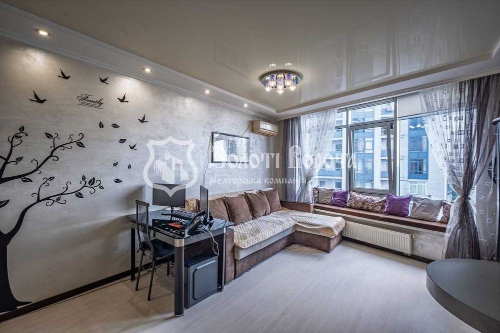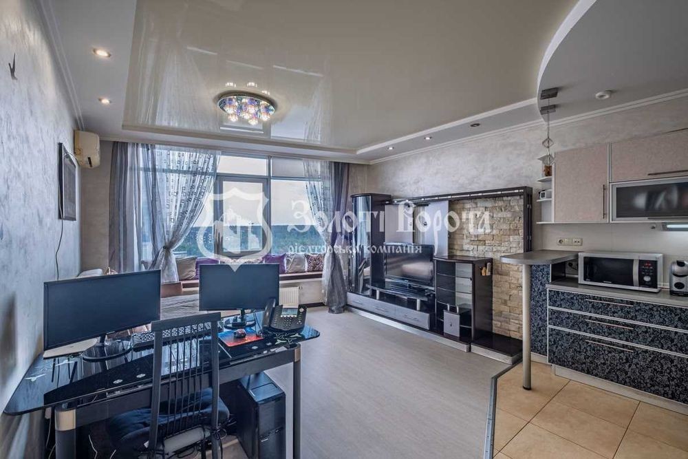 Сучасна квартира з євроремонтом! Продається простора 1-кімнатна квартира, перепланована в комфортну «євродвушку». Розташована на 17 поверсі 24-поверхового монолітно-каркасного будинку за адресою вулиця Миколи Ушакова, 1б. З панорамних вікон відкривається чудовий краєвид на двір, ліс та озеро. У квартирі виконаний якісний євроремонт, усі проводка та труби замінені. Санвузол суміжний, з сучасним ремонтом, новою сантехнікою, кутовою ванною та біде. Підлога у вітальні, кухні та санвузлі викладена кахлем, у кімнатах - ламінатом. Стіни оздоблені штукатуркою та фарбуванням. Натяжна дзеркальна стеля рівнева по всій квартирі. Нові міжкімнатні та якісні вхідні двері. Квартира продається з усіма вбудованими меблями та сучасною технікою, готова до негайного заселення. Тут залишаються велика вбудована шафа-купе, обладнана кухня з варильною поверхнею, духовкою, витяжкою та двокамерним холодильником. Також є 2 кондиціонери, посудомийна машина, 2 телевізори, роутер, бойлер та пральна машина-автомат. Для додаткового комфорту облаштовано теплу підлогу на кухні, в холі та санвузлі. Встановлено лічильник на опалення. Є засклений та утеплений балкон. Будинок у відмінному стані, з охороною та консьєржем у під'їзді. Двір чистий, доглянутий, з озелененням, дитячим та спортивним майданчиками. Є достатньо паркувальних місць, відеонагляд та підземний паркінг. Локація надзвичайно мальовнича та зручна. До метро «Академмістечко» 5 хвилин на авто або 10 хвилин пішки. Поруч зупинка громадського транспорту. Інфраструктура району розвинена: супермаркети, торгівельні центри, ринок, школа, дитячий садок, поліклініки, лікарні, аптеки, кафе, ресторани, відділення пошти та салони краси. Поруч є стадіон. Можливий обмін на вашу нерухомість. Усі подробиці про квартиру та про її придбання за телефоном. Реальна квартира! Телефонуйте у будь-який час! Ми завжди раді вам допомогти! Надаємо повний спектр послуг з купівлі та продажу квартир та будинків. Великий досвід допомоги по купівлі квартир за державними програмами: 1) Є-оселя 2) Житло для ВПО та військових (постанова 280) 3) Сертифікат на зруйноване житло З нами безпечно, якісно, вигідно!