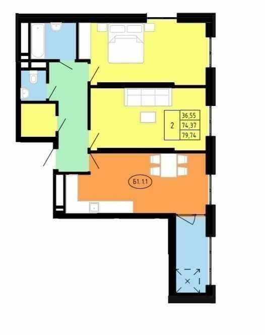 Продаж 2 кім. кв. 82 м. кв. вул. Замарстинівська 123000 $