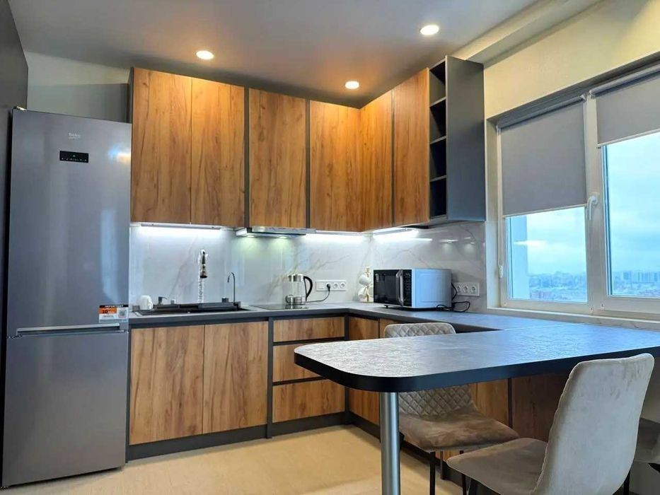 Перша оренда в новому сучасному ЖК "Нова Англія" с закритою територією. вул. Максима Максимовича, 24. Квартира 42 м2 на 14- му поверсі. Квартира тільки після ремонту. Всі меблі та побутова техніка відомих торгових брендів. Є предмети повсякденної необхідності, посуд, постільна білизна, тощо. Все нове та дуже якісне. На вікнах зовнішні металеві ролети. Квартира виглядає світлою та просторою за рахунок панорамних вікон. Ц. 23000 грн/міс.
