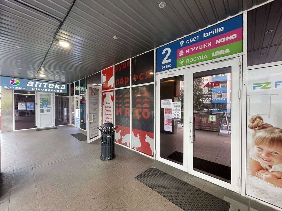 Сдам торгову площу біля входу в супермаркет АТБ, по проспекту Григоренко 5а. Торгово офісний центр повністю заселений орендарями. Великий пішохідний трафік. Торгова площа при заході в АТБ.