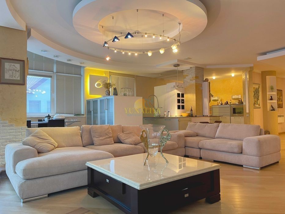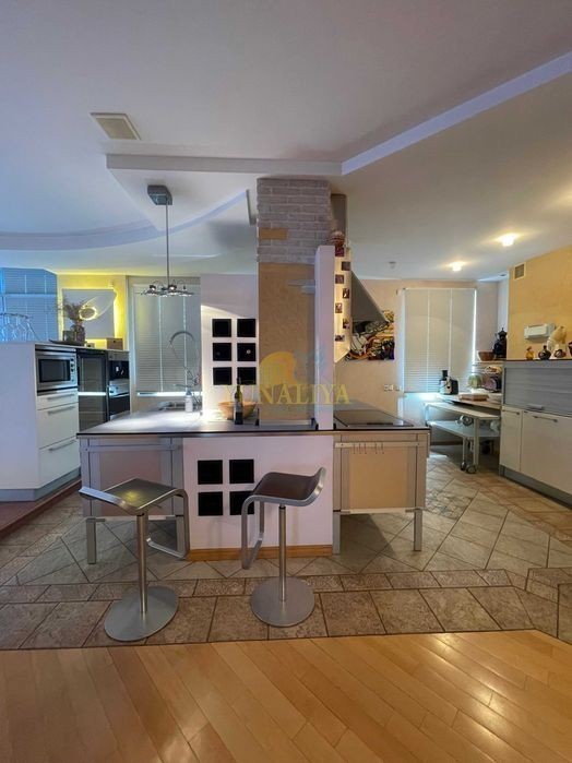 БЕЗ КОМИССИИ! Видеоролик! Двухуровневый Пентхаус, S - 546, 1 кв. м. Расположен на 5 и 6 этажах 6 ти этажного дома в жилом комплексе с закрытой охраняемой территорией и подземным паркингом. Планировочное решение: 1 уровень - холл, гардеробная, открытое пространство гостиной и кухни столовой, 91,6 кв. м, 2 спальни, 3 с/у (один из них с ванной с гидромассажем, душевой кабиной и сауной), кабинет с выходом на балкон; 2 уровень - Лаунж-зона, гостиная с камином, спальня, с/у, прачечная, кладовая. В квартире выполнен дизайнерский ремонт. Установлены: система «Умный дом», приточно-вытяжение кондиционирование, автономное отопление, покрытие пола - паркет, мозаика, глазурированная плитка, стены - штукатурка. Возможно размещение на крыше солнечных панелей. Квартира меблирована и оборудована бытовой техникой «Miele» и «Liebherr». Есть 2 паркомемта в подземном паркинге.