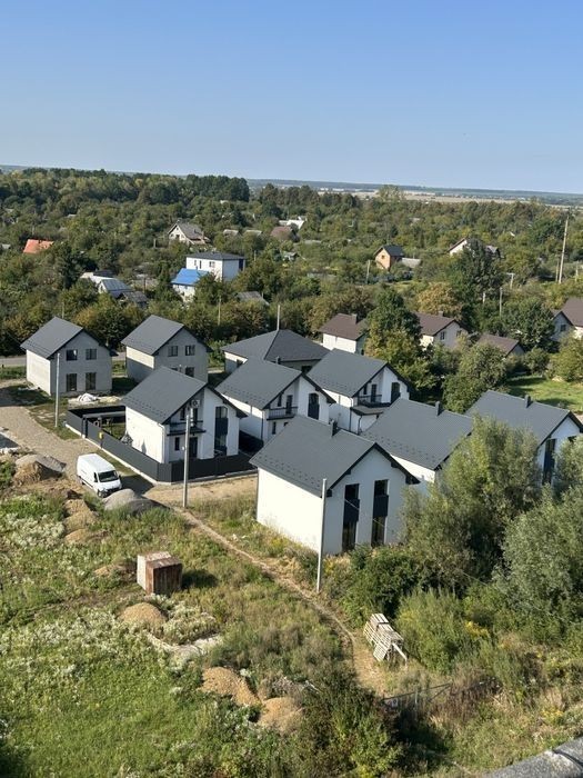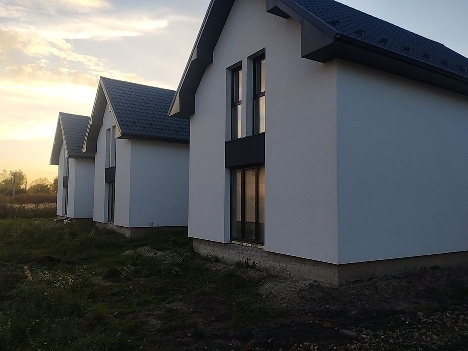 Продаються будинки у котеджному містечку від забудовника. Кожен будинок має окрему земельну ділянку і окремий заїзд. Все якісно надійно зручно і близенько. Гарна сучасна вулиця з асвальтованим покриттям. Садок, школа, магазини, аптеки, пошта, зупинки громадського транспорту все знаходиться у радіусі 150метрів. Є всі комунікації світло 18кіловат, якісна покрівля, дорогі вікна, панельне перекриття, утеплене горище, якісний і теплий фасад. Будинок 87м. кв, ділянка три сотки. Ціна за квадратний метр 650₴, Інвестуйте у нерухомість це перевірено часом.