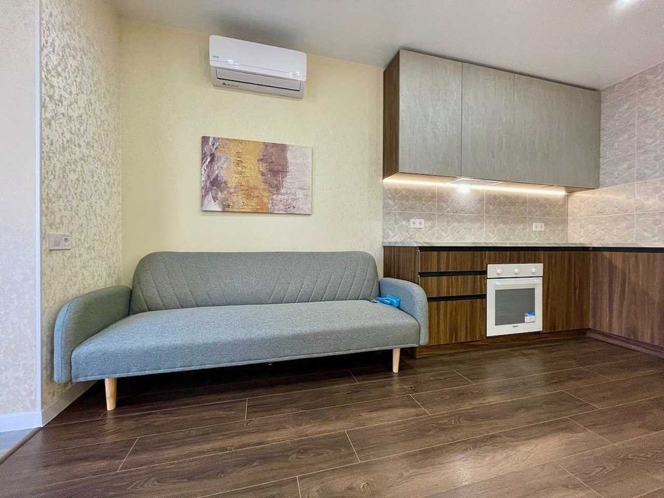 Двокімнатна квартира в ЖК Аржанова на 5 поверсі. 46м2 сплановані в окрему спальню, кухня-вітальня, суміщений санвузол та гардеробна кімната. У квартирі виконано ремонтні роботи: утеплення стін; тепло-шум ізоляція по периметру квартири. Перед зашивкою гіпсу стіни оштукатурені, для герметизації зовнішніх стін та по периметру квартири. Гіпсокартон в два шари та шумо-тепло ізоляція. виконано фарбування стін плюс армування флізиліном. повне розведення електрики, встановлена щитова. Автоматика. Повноцінна дорога щитова; повне розведення сантехніки, змонтована інсталяція під унітаз, встановлена душова кабіна; розведення теплої підлоги; встановлена кухонна, диван, стіл та стільці. З техніки: холодильник вбудований, духова шафа, електрична варильна панель; спальня: ліжко, тумбочки; вбиральня в повному наповненні накопичувальною системою, для зберігання речей; ванна кімната: душова кабіна, пральна машина, підсвічуванням. Встановлено кондиціонер. Не прогавте можливість стати власником цього чарівного помешкання! Зателефонуйте зараз та домовтеся про особистий перегляд. Двір закритий та забезпечений системою охорони, що надасть вам почуття безпеки та спокою.