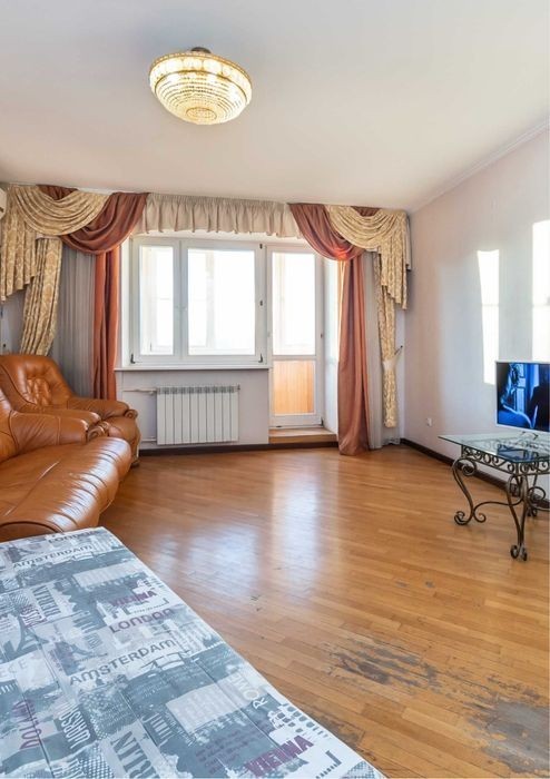 Продається 3-кімнатна квартира з ремонтом вул. Ахматової 3 Простора світла квартира на 17 поверсі монолітного будинку (1999 рік, ОСББ). У під'їзді два ліфти, конс'єрж, домофон. Планування: кухня, вітальня, спальня, дитяча кімната, роздільний санвузол. Три засклені балкони, двостороння, тепла та затишна. Меблі: кухня з натурального дуба, італійські меблі у спальні. Побутова техніка: бойлер, пральна машина, 2 кондиціонери, варильна панель, духова шафа, мікрохвильова піч, витяжка, холодильник. Натуральний паркет, дерев'яні вікна зі склопакетами, металеві двері. Перегляд можливий за попередньою домовленістю.