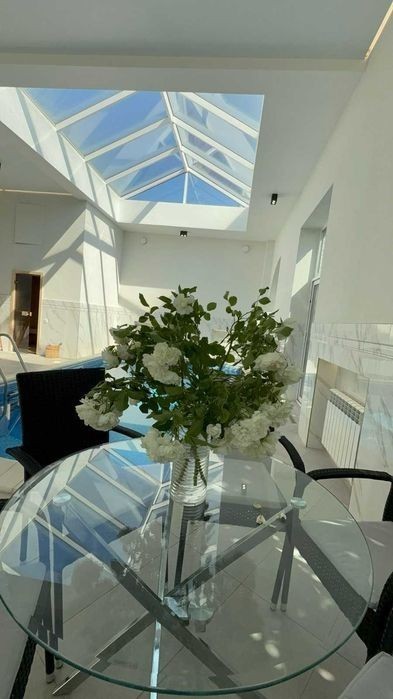 Есть видео! Скину по запросу! Продам дом из крымского ракушняка, утеплен базальтовой ватой, крыша цпч. Построен в 1 этаж. 5 спален, 2 санузла, кухня-гостиная, гардероб, постирочная, кабинет. Гараж на 2 машины. Тёплый пол во всем доме, потолки 4 метра, газовое отопление с котлом Виссманн и контроллером Теч. Охранная система и видеокамеры. Тихая улица закрыта воротами Подвал под всем домом. Отдельностоящий крытый бассейн с подогревом тепловым насосом и противотоком, сауна. Участок 10 соток.