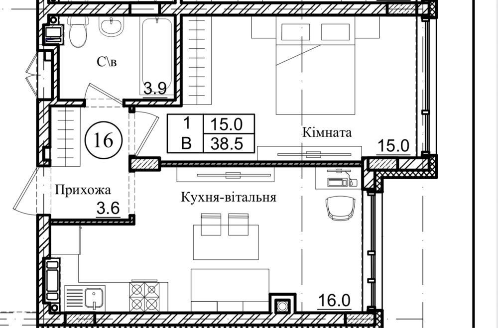 1-кімн 38,5м2 в с. Святопетрівське. вул. Володимирська, 36А, Є-оселя, 2%