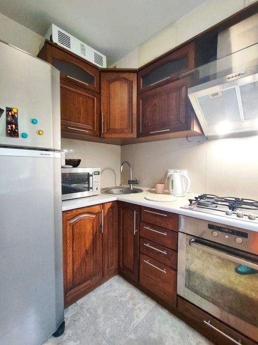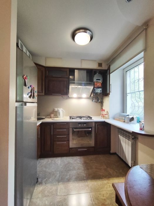 ПРОДАМ 2ккв возле метро Ботанический сад ул. Александра Олеся 19 (Сергея Есенина 19) 1/5, кирпич, не угловая. С КАЧЕСТВЕННЫМ капитальным ремонтом! Тепло-шумоизоляция профиль 7,5 см, мин вата 100мм стены потолок, новые трубы водяные и отопление, стояки, канализация. Полностью поменяна проводка. Установлен фильтр тонкой очистки воды. Абсолютно всё новое, окна, входные двери, газовая колонка Bosch. Обсуждается наполнение квартиры, что сможем оставить. Перепланирована в кухню-гостинную и спальню. Общая площадь: 41,5 м² Без балкона. Есть возможность сделать пристройку, на окнах решётки. Во дворе круглосуточная охрана, по соседству прокуратура. Стоимость: 41900 долл. Торг возможен. Можно по сертификату.