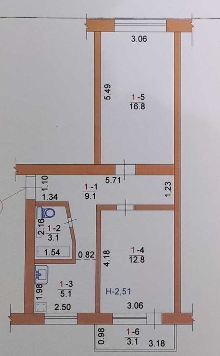 - 54 м²