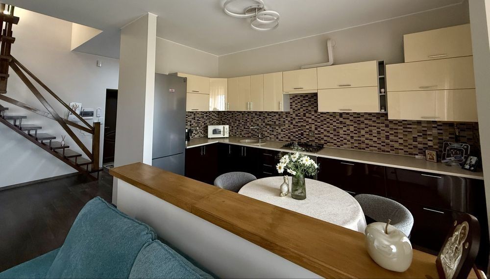 Вітаю. Пропонуємо в оренду чудову дворівневу квартиру в гарному затишному районі міста. Світла, простора, тепла та позитивна. перший поверх : вітальня, кухня - гостинна, санвузол, велика лоджія. Другий поверх : спальня з гардеробом та дитяча, велика лоджія. Встановлені кондиціонери. Встановлена сигналізація, інтернет. Дружні сусіди. Тихий двір з дитячим майданчиком. Поряд магазини. Без тварин Дякую за увагу. Деталі будь ласка за телефоном, на повідомлення тут немає часу відповідати.
