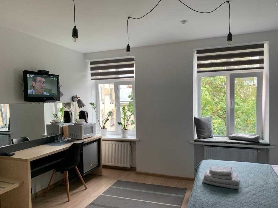 Вітаю! Продається апарт-готель на вул. Староєврейській, в центрі Львова. Вулиця з дуже великим трафіком туристів. Всі вікна на зелений скверик та фонтан площу Коліївщини. Наразі є 6 діючих апартаментів - з постійним доходом та ще 2 потребують ремонту. Всі вікна з апартів виходять на фасад будівлі. Продається зі всіма меблями та побутовою технікою. Сучасний якісний ремонт. Замінені всі комунікації та проводка в будинку. Відремонтований під'їзд та брама. Встановлена енергоефективна система опалення. Безключовий доступ по кодах. В будинку ОСББ. Автоматизована система прийому бронювань та заселення/виселення. Високий рейтинг - 9.1. Ціна 690000$ Телефонуйте!