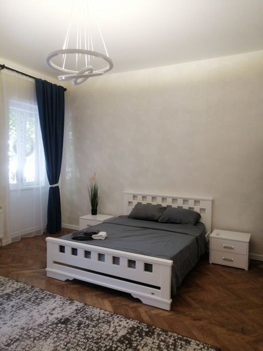Подобова оренда квартири в історичному центрі міста. Розташована по адресі Конституційна 6. На розі площ Театральна, Філармонії, Центральна. В пішій доступності всі пам'ятки архітектури міста. Квартира знаходиться на першому поверсі одноповерхового будинку, в закритому дворі. В квартирі зроблений сучасний ремонт з унікальним плануванням. Можимо прийняти до 4 гостей. Доба 1200 грн.