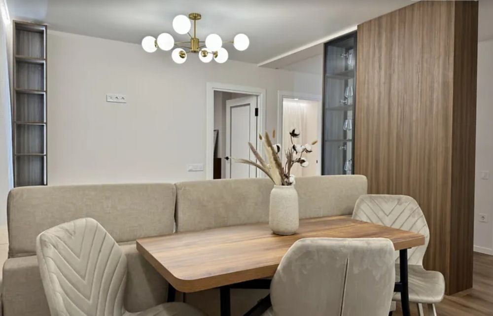 Продаж стильної 2-кімнатної квартири у новобудові, Тернопіль, район Дружба - провулок Цегельний Площа: -57 Поверх: 4 із 10 (ліфт працює) Тип: новобудова, цегляний будинок Планування: • 2 окремі спальні • простора кухня-вітальня • суміжний санвузол • гардеробна Ремонт та облаштування: • тепла підлога по всій квартирі (єдиний контур) • покриття - кварцвініл • якісні корпусні меблі на замовлення • м'які меблі преміум-класу Lisma (розкладний кутовий диван, ліжко з підйомним механізмом)