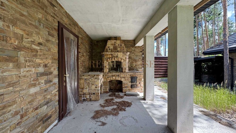 Продаж будинку з гаражем, гостьовим будинком та окремим гаражем у м. Буча по вул. Льва Симиренко Ділянка - 17 соток Площа будинку - 350/95/80 кв. м. Капітальний будинок 2021 року Основний будинок побудований у три рівні: цокольний поверх з висотою стелі 3,5 метри - спортзал, спа, сауна, котельня, санвузол (туалет/душ), більярдна; 1 поверх - передпокій, санвузол, кімната (кабінет або гостьова), гараж та кухня-вітальня з виходом на терасу; 2 поверх -господарська спальня з двома гардеробними та санвузлом; кімната з гардеробною; дві кімнати з виходом на балкон; санвузол та гардеробна. Технічні характеристики основного будинку: фундамент - стрічковий, утеплений та гідро ізольований; несучі стіни - керамічні блоки 380мм та повнотіла цегла; міжкімнатні перегородки - червона повнотіла цегла; зовнішнє утеплення - 100мм базальтова плита; фасад - клінкерна цегла; перекриття - монолітна залізобетонна плита; дах - натуральна керамічна черепиця TejasBorja Flat Leon (Іспанія); вікна - REHAU GENEO (рама 86мм); всі підвіконня та відмежування цоколя від фасаду виконано гранітною плитою; сходи на другий та у цокольний поверхи - залізобетонна конструкція; ворота в гараж з автоматикою. Внутрішнє наповнення основного будинку: заведені всі комунікації (без розведення); виконана гіпсова штукатурка стін; на всьому цокольному поверху цементно-піщана штукатурка стін; у цоколі зроблена гідроізоляція та на підлозі викладений стиродур 100мм. Гостьовий будинок та окремий гараж також побудовані з керамічних блоків 380мм, утеплені мінватою. Фасад - облицювальна цегла ручної формовки Vandersanden. Дах - натуральна керамічна черепиця TejasBorja Flat Leon (Іспанія). Вікна - REHAU GENEO (рама 86мм). Встановлені броньовані вхідні двері. Планування гостьового будинку: передпокій, кухня-студія зі справжньою піччю, антресоль (спальне місце) та крита тераса з облаштованою зоною барбекю. Окремий гараж з ямою та технічним приміщенням. На воротах встановлена автоматика! За гостьовим будинком та гаражем зроблені капітальні навіси для зберігання дров та садового інвентаря. Комунікації: електроенергія - 3 фази 40 кВт; вода - власна свердловина; каналізація - септик; зроблений підземний резервуар для зберігання газу, об'ємом 10 куб. м. Лісова частина міста. Пору.е. ітна забудова Мінімальне оформлення