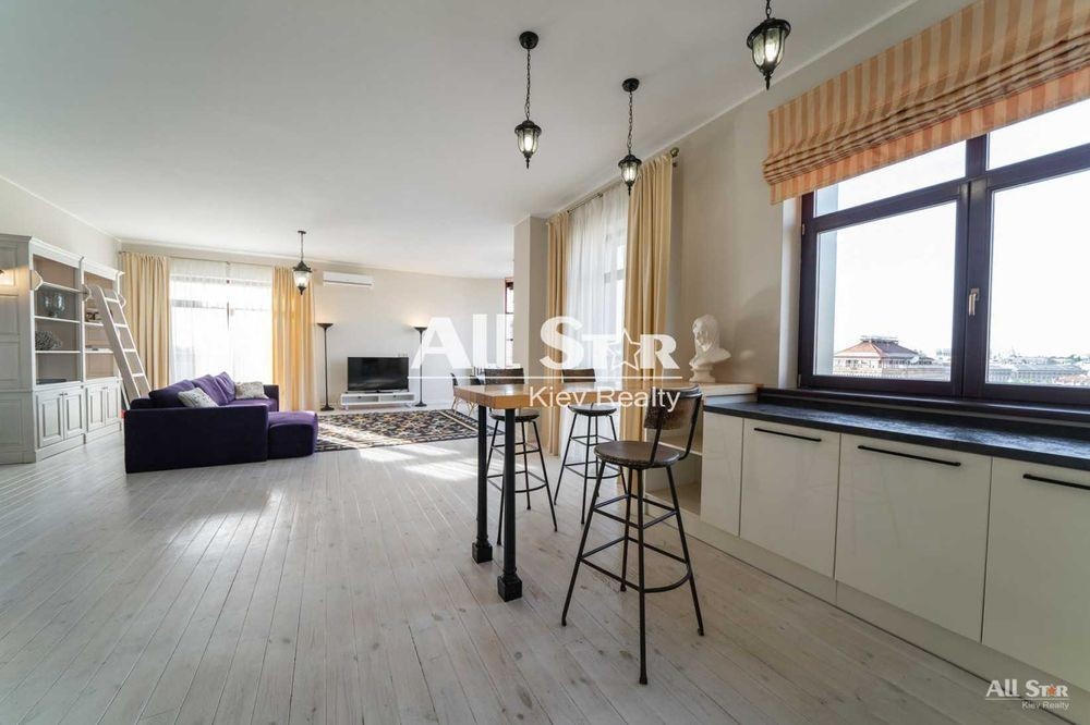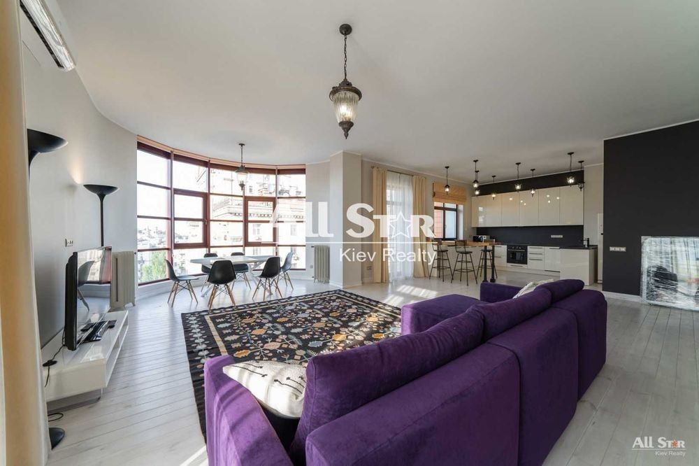 Оренда 4к квартири в Києві, ЖК Капітолій, Печерський р-н, Хрещатик вул., 27Б, ст. м. Хрещатик, 200 кв. м, 9/11 пов., З ліфтом, 3 спальні, 3 з/в, новий будинок, дизайнерський ремонт. Пентхаус у житловому комплексі "Капітолій" на Хрещатику з панорамним виглядом, новим ремонтом, сучасною технікою, обладнаний меблями та побутовими засобами від посуду до постільної білизни. Студія, що поєднує вітальню з кухнею, три спальні (дві окремі, одна прохідна, яка може бути відокремлена за потреби), три санвузли, панорамні вікна в кожній кімнаті, вітальня з краєвидом на Хрещатик. Є просторий вестибюль з цілодобовою консьєрж рецепцією, цілодобова охорона, паркінг безпосередньо в будинку (використовується як бомбосховище, за потреби). У квартиру ведуть два ліфти та безпечні евакуаційні сходи з природним освітленням. Будинок обладнаний власною котельнею.