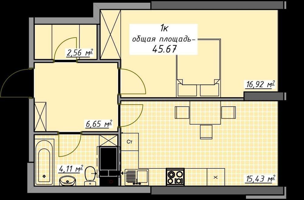 - 44 м²