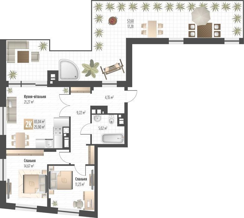 Продаж 2 кім. квартири SOUL PARK вул П. Орлика 83.04 кв. м