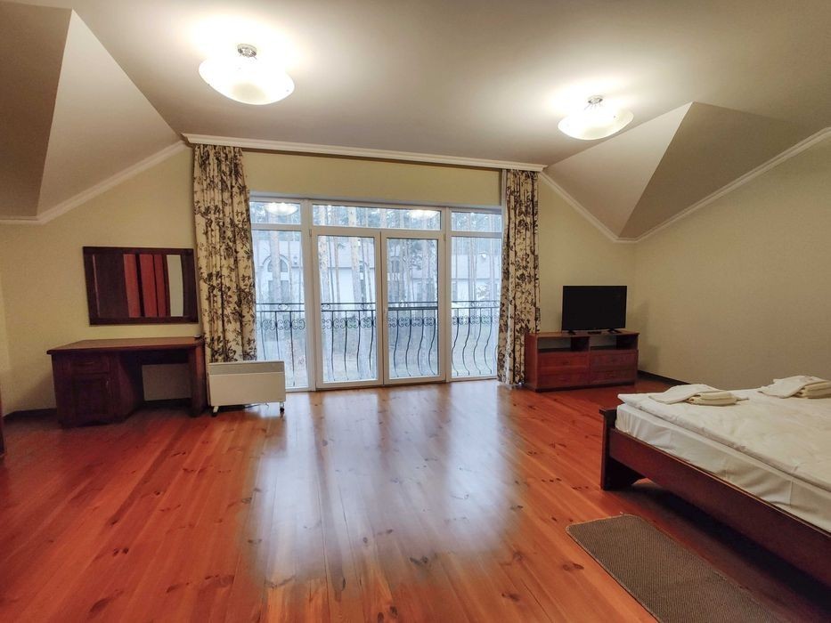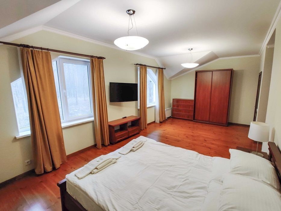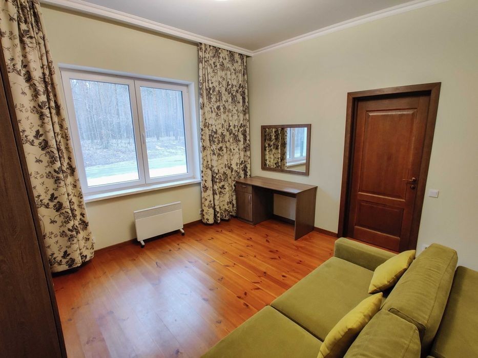 Оренда двоповерхового таунхауса Є вивід під генератор та перекидний автомат Перший поверх: зал-кухня, гостьова, туалет Другий поверх: дві спальні Опалення від електрики Можливе проживання з тваринами Поруч сосновий ліс, ресторан та дитячий майданчик