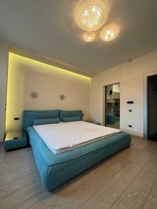 Оренда 3-х кімнатної квартири на 7-му поверсі в ЖК Да Вінчі (вул. Гончара 35), площа 150м2: 2 окремі спальні, 2 санвузли, вітальня/кухня, з балконом, дві гардеробні. Квартира мебльована та оснащена всією необхідною технікою У будинку 2 ліфти, відеоспостереження та цілодобова охорона.