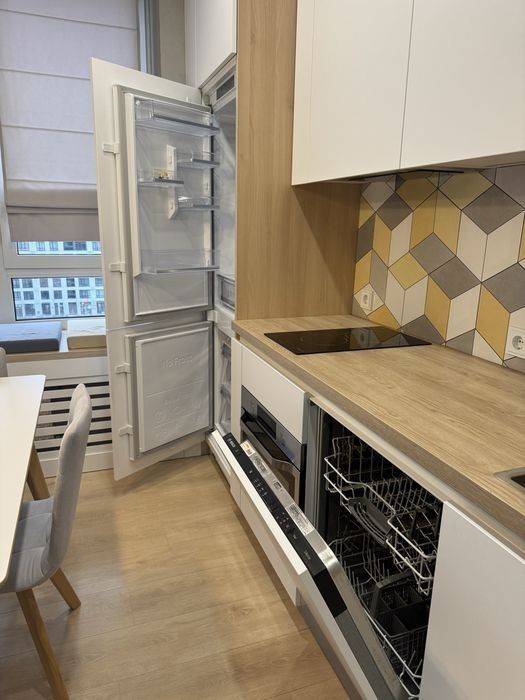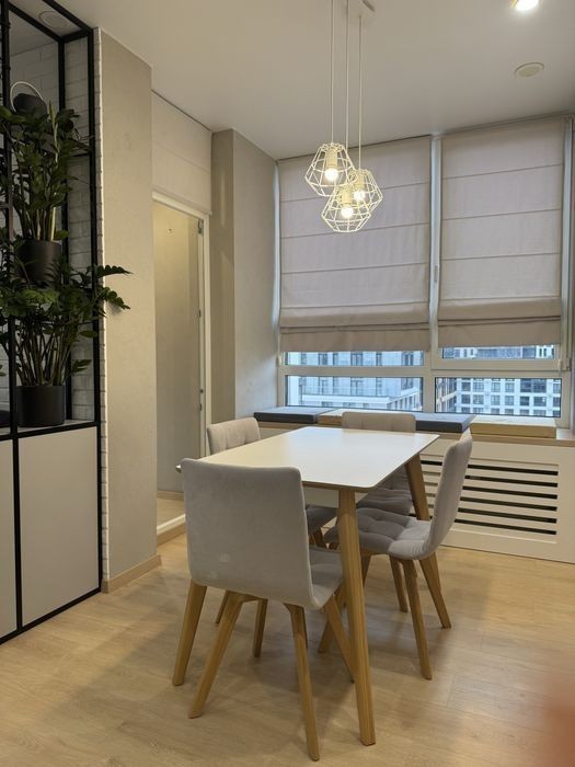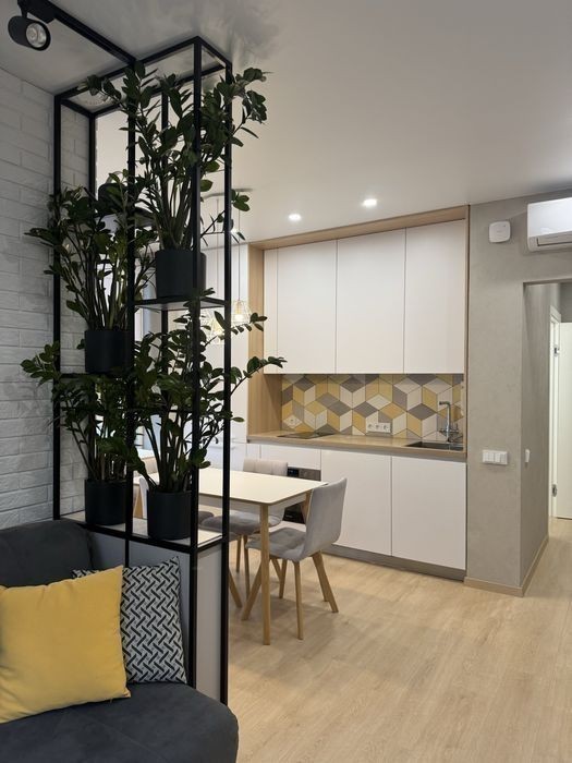 Пропоную Вашій увазі чудову квартиру на 7 поверсі, в стильному ЖК»Файна таун» по вул Салютній 2. Квартира здається вперше, сучасний і зручний дизайнерський євроремонт, який зачаровує своєю простотою та продуманістю всіх деталей та використанням високоякісних матеріалів європейського виробництва. Квартира площею 39.3 має додатково заселену лоджію з підігрівом підлоги площею 2.7 м, та складається з вітальні, поєднаної з зоною кухні, загальною площею 17.5, окремої спальні, площею 11 м, передпокій досить просторий із зоною для верхнього одягу та зручним обʼєднаним с/в, площею 4.4. За рахунок світлих тонів інтерʼєру, і висоти стелі -2.7 м-квартира виглядає досить просторо і зручна для проживання однієї, двох осіб, або родини з маленькою дитиною. Вікна квартри виходять у двір, але не мають близькості до проїзду автомобілів та не має ефекту «вікна в вікна». Квартира оснащена охоронною системою Аякс, інтернет з блоком безперебійного живлення на 10 годин-вита пара, сейфом, фільтром очистки питної води, 2 кондиціонери на тепло/охолодження. вбудована кухня облаштована індукційною плитою, 3-в 1 ( пароварка, духова шафа, мікрохвильовка), вбудований холодильник з морозильною камерою, посудомийна машина. В ванній кімнаті є безпосередньо ванна та лійка з ефектом тропічного душу, пральна машина та система АКВАСТОП, у випадку залиття. Лічильник на воду та тепло. В кімнаті диван розкладний двоспальний, обідня зона на 4 персони, телевізор, та оригінальне озеленення. В ЖК існують правила співіснування та прийому гостей, які я можу надіслати для попереднього ознайомлення і також за Вашим бажанням надаю відеоогляд квартри на зручний для Вас месенджер. Квартира вільна, маю ключі, перегляд у зручний час по домовленості. Доступ до ЖК лише за індивідуальними картами доступу. За Вашим бажанням надаю відеоогляд квартири.
