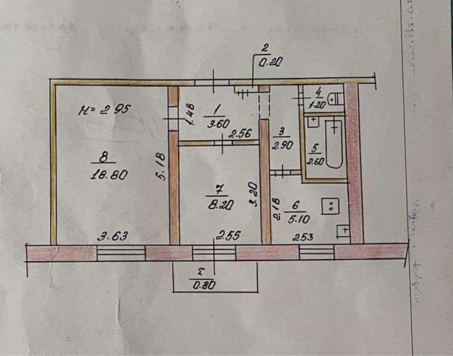 Квартира 2 кімнатна одностороння з роздільним плануванням. Сталінка. Велика зала. Компактна